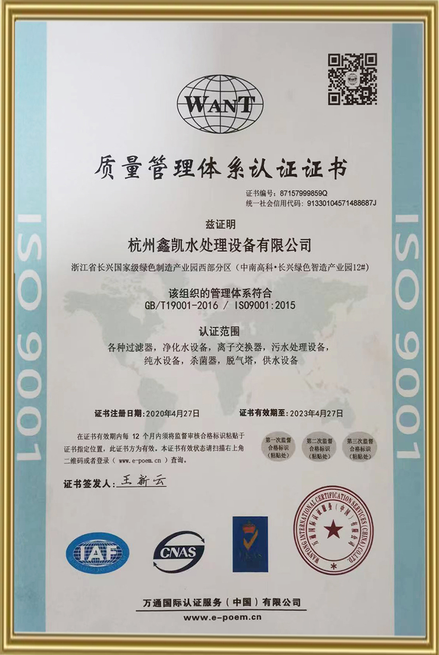 質量管理體系認證證書
